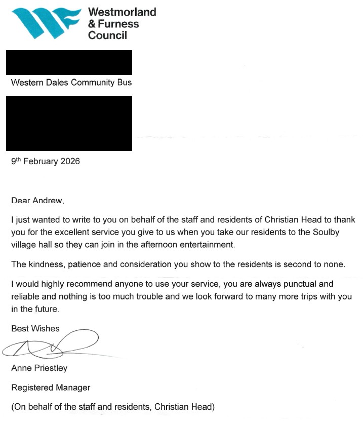 Western Dales Bus Company have given us exceptional value both in cost and service. They are totally reliable and fully competent at handling a wide range of disabilities making everyone’s journey a delight. I would thoroughly recommend them and always look to book them when we bring a group to the South Lakes.