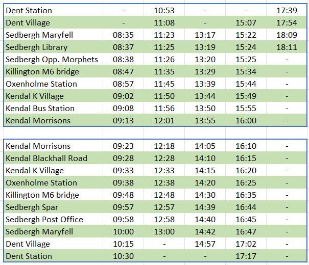 Dent Station - Dent - Sedbergh - Oxenholme - Kendal